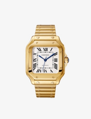 CRWGSA0043 Santos Cartier medium 18ct yellow-gold, sapphire and leather watch- Price:€39,400.00