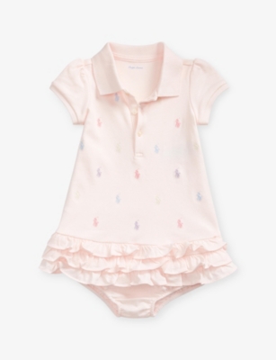 Brand-embroidery short-sleeves cotton-jersey dress and bloomer set 3-24 months