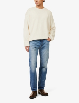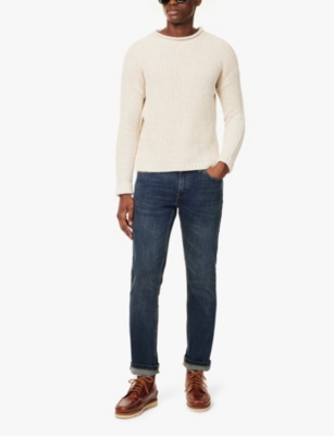 Five-pockets faded-wash straight-leg slim-fit stretch-denim blend jeans