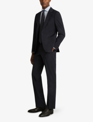Make a pin-sharp impression in the office with men's regular-fit suit trousers. Soft, woollen fabrics are woven with plenty of cotton and a hint of stretch, to allow you to move and sit with ease. Select from the classic navy, black and grey hues, which will form the foundation of your professional wardrobe. Complement your trousers with a coordinating jacket.