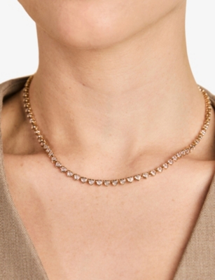 Bezel Heart 18ct Yellow Gold-Plated Brass And Cubic Zirconia Tennis Necklace- Discount price:€76.00