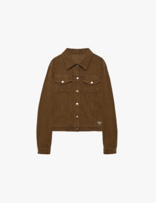 Logo-plaque chest-pocket cotton-corduroy jacket