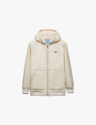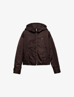 Re-Nylon brand-plaque nylon hooded jacket