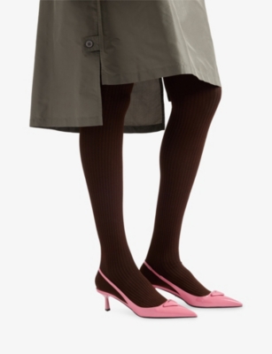 Saffiano Sling-Back Patent-Leather Heeled Courts