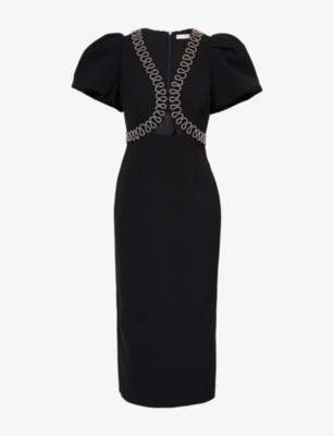 Narcissa Bow-Embroidered Taffeta Midi Dress