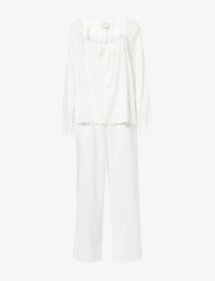 Reformation x Nara Smith Buttercup Hour Embroidered Cotton-Blend Pyjama Set- Price:€350.00
