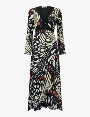 Butterfly-print V-neck satin maxi dress- Discount price:€87.00