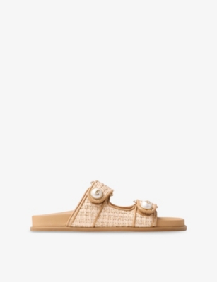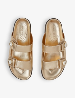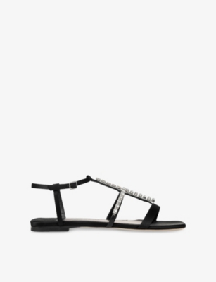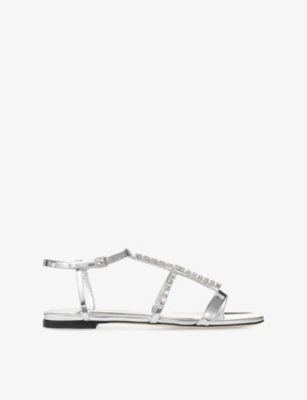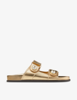 Browse our collection of women's flat sandals to find your next sunny-season favourites. Expect supple leather strappy styles dotted with gold studs, tan espadrilles, sporty sliders and more. Plus, look out for designer gladiator sandals and other classic silhouettes from such coveted labels as Gucci, Dune and Valentino. Whether you're jet-setting to balmy climes or relaxing on your own patio, our range will have you ready for summer.