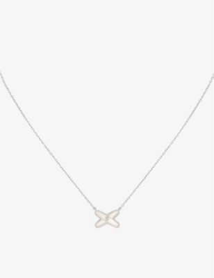 Jeux de Liens 18ct white-gold, 0.01ct brilliant-cut diamond and mother-of-pearl necklace- Price:€1,960.00