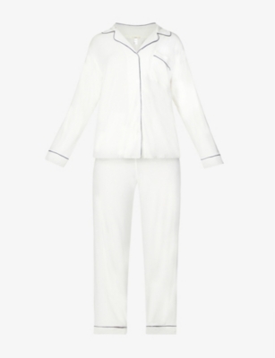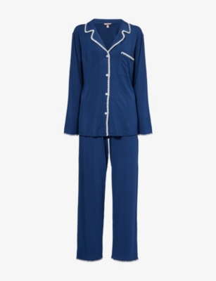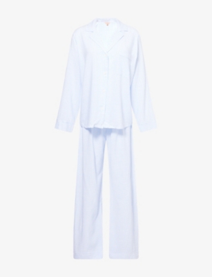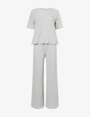 Logo-Embroidery Long-Sleeve Cotton-Jersey Pyjama Set- Price:€151.00