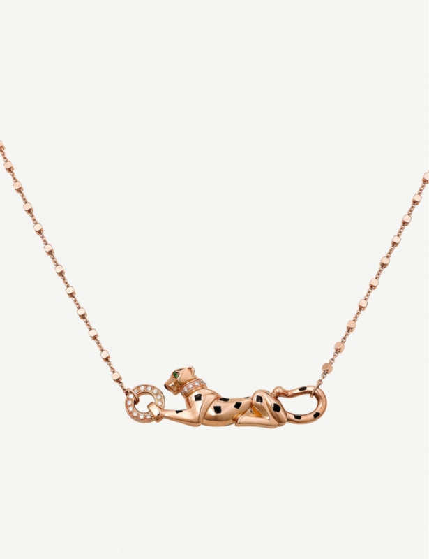 Panthère de Cartier 18ct rose-gold, diamond, tsavorite garnet and black lacquer necklace