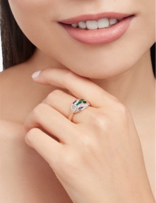 Serpenti Tubolari 18ct white-gold, 3.75ct brilliant-cut diamond and 0.26ct emerald ring- Price:€65,000.00