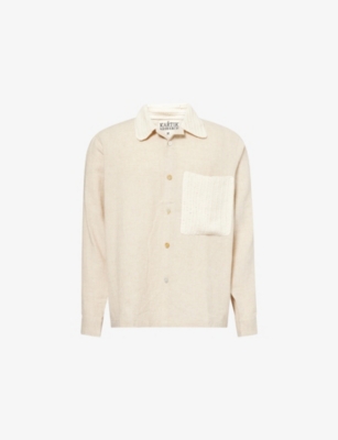 KARTIK RESEARCH: Crochet Pocket Long-Sleeve Cotton ShirtKARTIK RESEARCH: Crochet Pocket Long-Sleeve Cotton Shirt