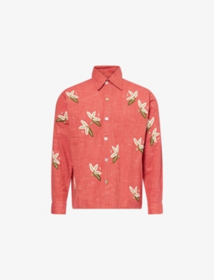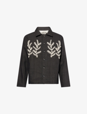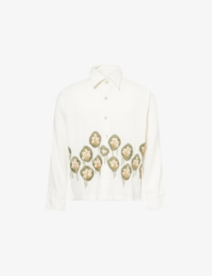 KARTIK RESEARCH: Floral-Embroidered Classic-Collar Cotton ShirtKARTIK RESEARCH: Floral-Embroidered Classic-Collar Cotton Shirt