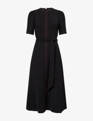 Tweed Long-Sleeve Woven Midi Dress