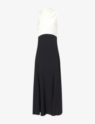 Colour-Block Draped Satin Maxi Dress