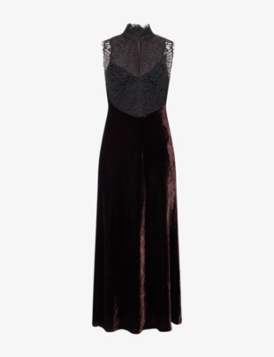 High-Neck Lace And Velvet Maxi Dress
