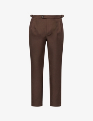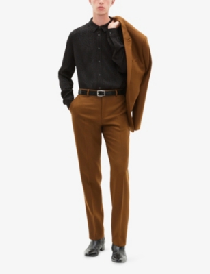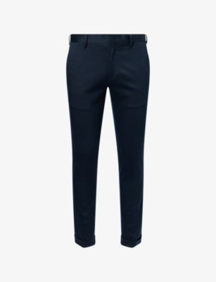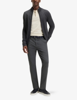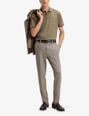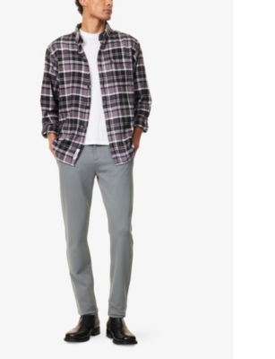Opt for slim-fit trousers for men to combine ease with formality. Structured waistbands, tonal sticking and concealed fastenings keep things neat; cotton-elastane blends provide a comfortable amount of stretch. For sharper lines, pick a pair with a pressed front-centre pleat. Prefer a relaxed cut? Browse straight-leg and tapered pieces crafted with elasticated waists that allow freedom of movement.
