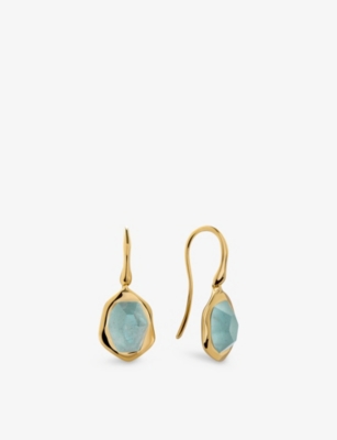 Odyssey 18ct Yellow Gold Vermeil and Aquamarine Huggie Earrings- Price:€125.00