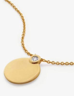 Round Charm 18ct Yellow Gold-Plated Vermeil Sterling-Silver And 0.015ct Lab-Grown Diamond Pendant Necklace- Price:€195.00