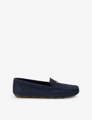 Logo-plaque suede driving loafers