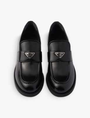 Logo-plaque brushed leather loafers
