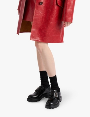 Branded-buckle brushed leather loafers