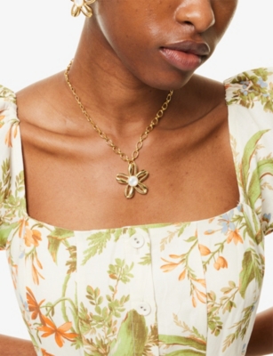 Aloha 24ct Antique Gold-Plated Brass And Mother-Of-Pearl Pendant Necklace- Price:€210.00