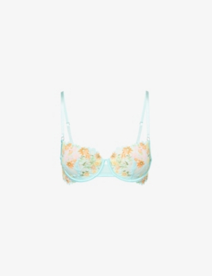 Our bra selection includes everything from underwired padded plunge bras that provide maximum support and shaping, to elasticated bralettes for seamless comfort. Gym-goers will love our sports bra range: think cross-over shoulder straps, vibrant prints and high-octane colours. For something indulgent, choose a luxury silk bra detailed with scalloped trims, lace, embroidery or sheer mesh. Match your desired bra with a pair of bottoms - these range from delicate mid-rise thongs to full briefs in cosy cotton.
