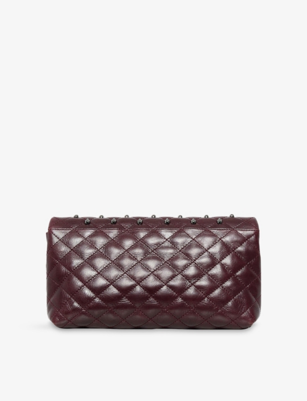- Chain shoulder strap, silver-tone hardware, engraved branding at fastening, tonal stitching, 3 internal compartments, internal zip pocket