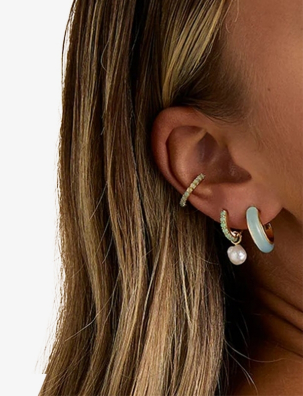 Charm 18ct Yellow Gold-Plated Sterling-Silver, Aqua Chalcedony And Freshwater Pearl Drop Huggies