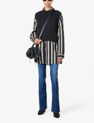 Innovation is a key aspect of all 7 For All Mankind denim clothing; explore the house's ultra-soft, lightweight Bair fabric and Luxe Performance stretch technology, which help jeans retain their shape after washing. These flexible options provide flattering fits that are easy to move around in. Silhouettes come in slim-fit, straight-leg and flared cuts, while ripped knees and frayed hems create worn finishes. Choose from classic colours ranging from black and indigo to lighter stonewashed versions. Dedicated to planet-friendliness, the brand uses recycled and organic materials - look out for the Project Earth banner to spot these consciously crafted styles.
