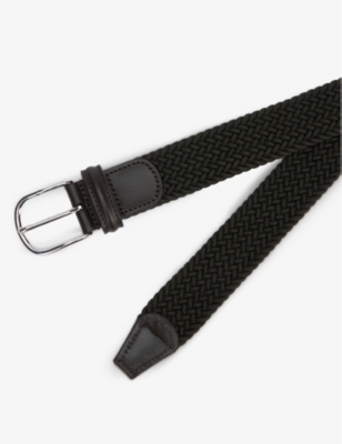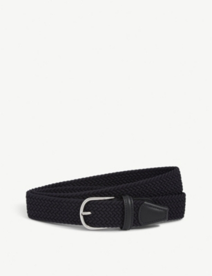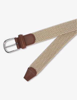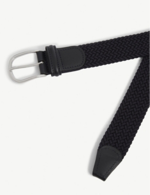 Woven stretch-elastic and leather belt