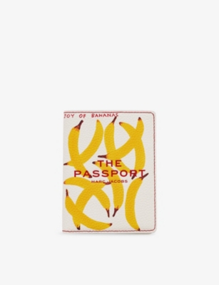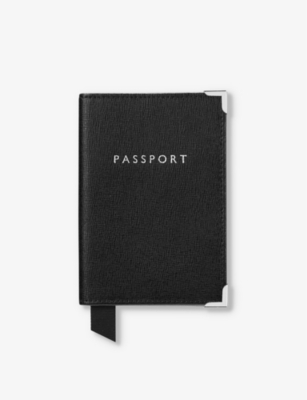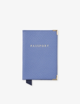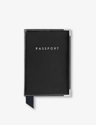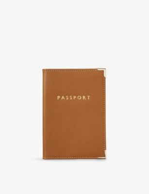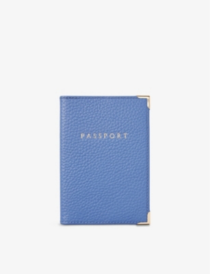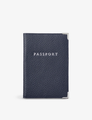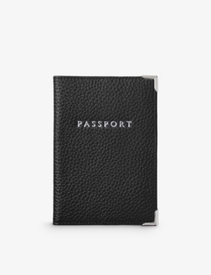 'Passport' foil-print pebble leather passport cover 14cm- Discount price:£42.00