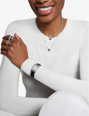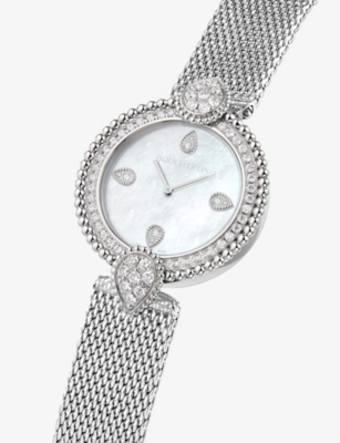 Also in our range by Boucheron, you'll find watches crafted from durable stainless steel to bring a little sleekness into your everyday life. These timepieces have plenty of traditional details: think lacquered dials, etched logos and silver-toned Roman numerals. They're built to last, with additions such as scratch-resistant sapphire crystal cases making them heirloom-worthy choices. For a romantic aesthetic in the evening, choose a design with mother of pearl accents and brushed satin straps. Pair yours with a set of Boucheron drop earrings in bold white-gold, complete with aquaprase to add a splash of subtle colour.