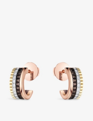 Quatre Classique 18ct yellow-gold, white-gold and pink-gold and diamond hoop earrings- Price:£9,300.00