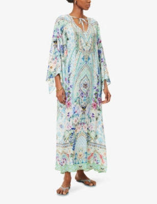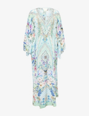 Floral-Print V-Neck Silk Kaftan