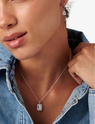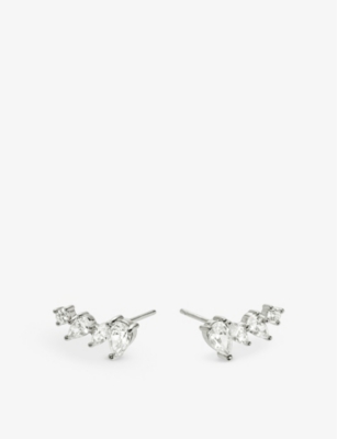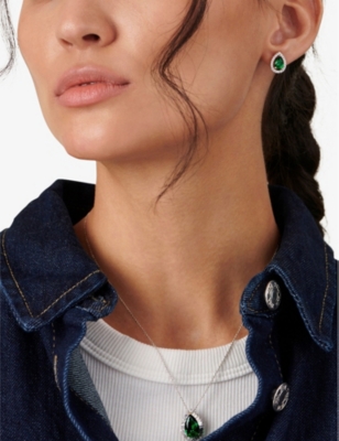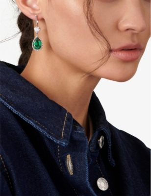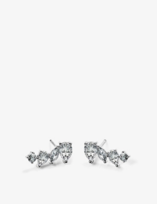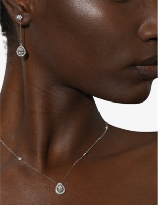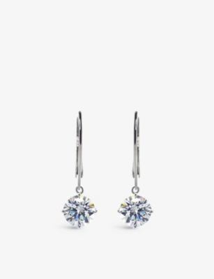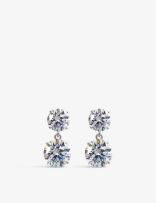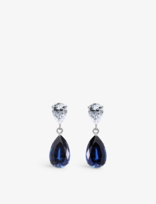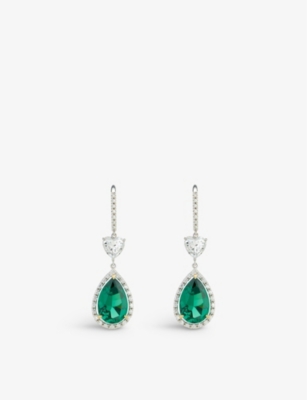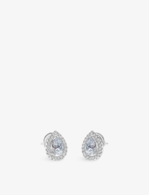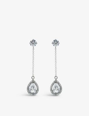 Blythe pear-shaped 9ct white-gold and 1.5ct eq cubic zirconia drop earrings- Price:£319.00