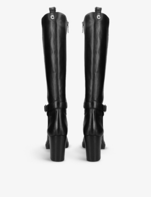 Silver 2 buckle-embellished leather knee-high boots- Discount price:£159.00