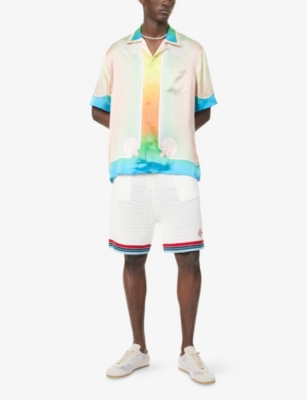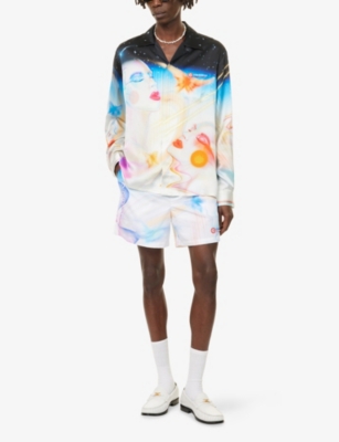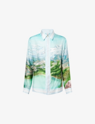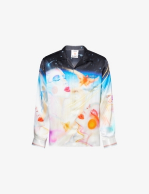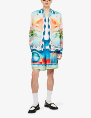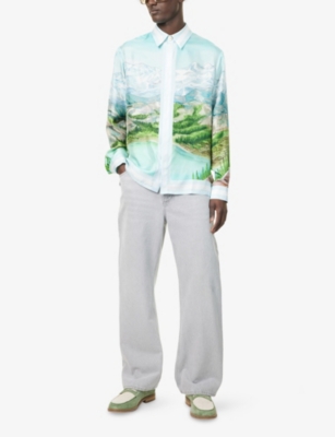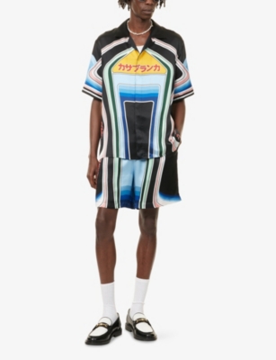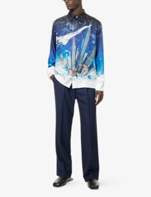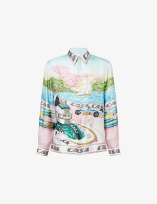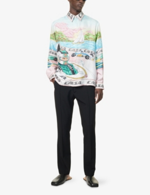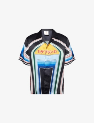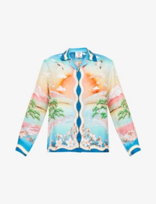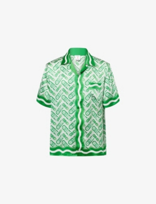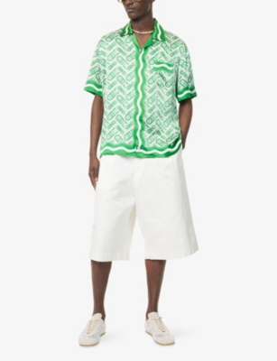 Cuban-Collar Graphic-Pattern Silk Shirt