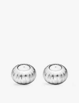 Bring Scandinavian flair into your home with our tempting online Georg Jensen selection. Explore timeless kitchenware that will complement modern, retro and eclectic furnishings alike. Classic steel bowls in a selection of sizes add cool charm to your space while silver candlesticks of varying heights create a touch of drama. Georg Jensen's distinctively curved designs also make enduringly popular gifts.