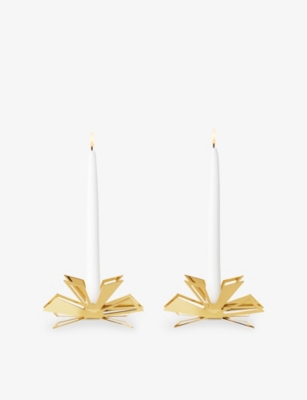 2025 Christmas Taper 18ct Yellow-Gold Stainless-Steel And Brass Candleholders- Price:£50.00