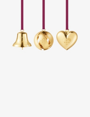 2025 Christmas 18ct Yellow-Gold Plated Stainless-Steel And Brass 3-Piece Ornament Set- Price:£75.00