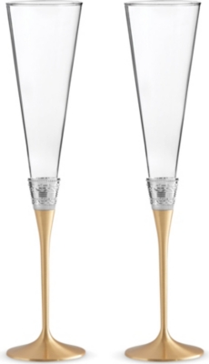 For something more contemporary, we've hand-picked a selection of designer champagne flutes that modify the familiar form in inventive ways. Surprise everyone with daring hues, captivating finishes or bold designs. Or why not place the emphasis on practicality with spill-resistant stemless glasses? These will impress guests and might just save your tablecloth, too.