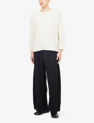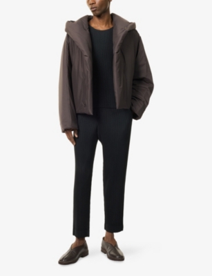 Choose a pair of Homme Plissé Issey Miyake trousers in a relaxed, tapered fit for a contemporary silhouette. A touch of volume at the thighs is whittled into slender ankle-grazer hems, whilst an elasticated waist offers exceptional comfort. Add an Homme Plissé jacket with a smart notch-lapel for a stand-out look. Don't forget a roll-out bag to keep your belongings close at hand when you're headed out. We love that it can be quickly compacted so you can travel light.