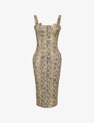 Gracie Snakeskin-Print Faux-Leather Midi Dress