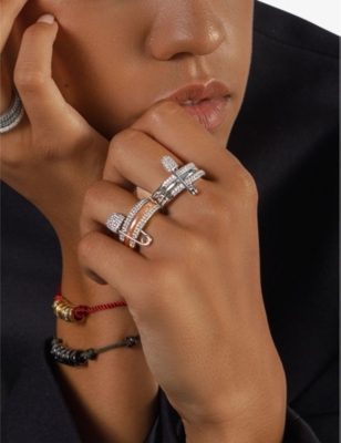From ornate options to chunky signet-inspired creations, we have all bases covered. Semi-precious stones piquing your interest? Our women's designer rings are scattered with a rainbow of minerals, from the creamy elegance of freshwater pearl to the eye-catching green of amazonite. To create a bespoke ring stack, combine these gem-adorned styles with more minimal iterations crafted from your favourite metal: gold, silver or rose gold. Pick out barely-there bands in contrasting premium metals that will look stunning layered in twos and threes. For harmonious pairings, choose from our range of curated ring sets.