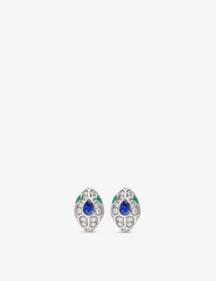 Serpenti 18ct white gold, 1.67ct brilliant-cut diamond, sapphire and emerald earrings- Price:£34,100.00