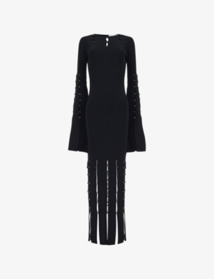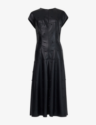 Stud-embellished flared-hem faux-leather maxi dress- Discount price:£75.00