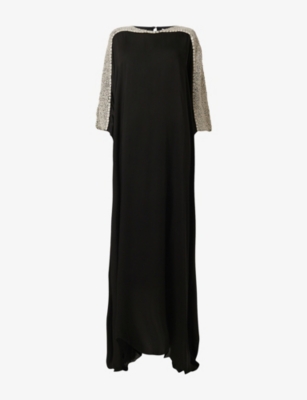 V-neck long-sleeve metallic-yarn kaftan- Discount price:£65.00